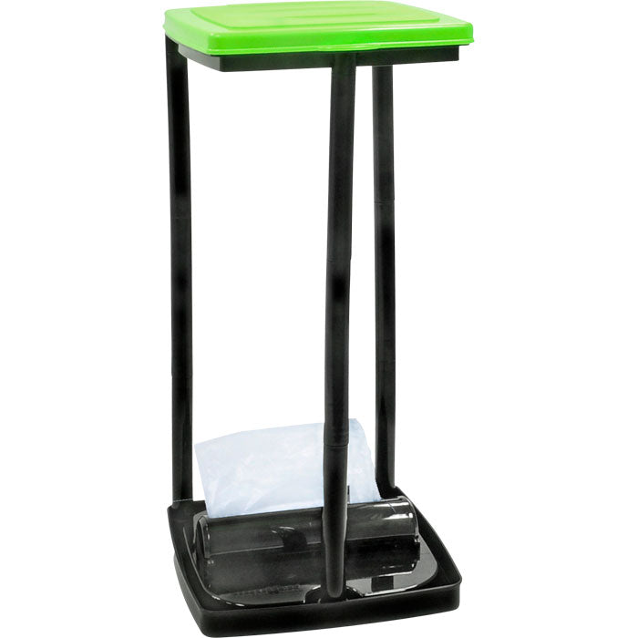Affaldsstativ. Model: Bio Boy NG. Affaldsstativ /n der er nemt at sætte op og som har integreret /n plads til poserullen i bunden. Leveres inkl. 10 /n affaldsposer. Leveres i assorterede farver /n (blå/grøn). Mål: B32,5 x L28,5 x H66 cm Mål, /n foldet: 32,5 x L28,5 x 7 cm Vægt: 0,65 kg