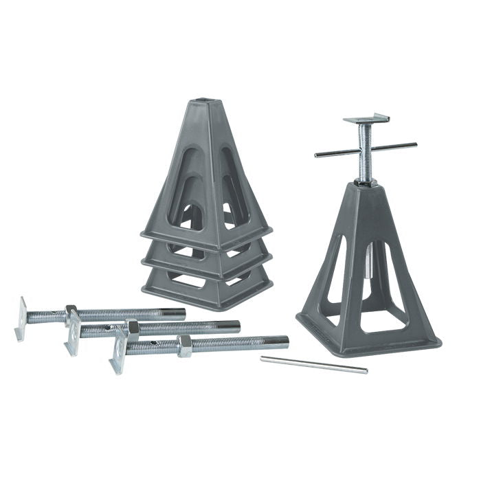 Fiamma sæt med 4 stk. bærefødder i hård plast. /n Fødderne kan justeres i højden fra 31-44 cm. /n Bæreevne pr. fod: 750 kg. Farve: Grå. Vægt: 3,2 /n kg.
