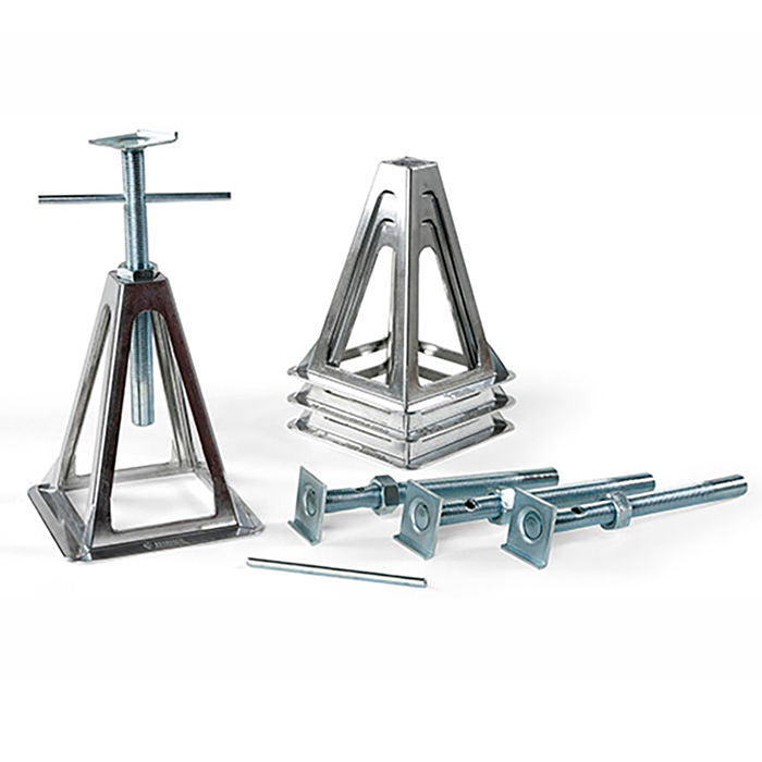 Bærefødder, poleret aluminium. Sæt á 4 stk. Kan /n justeres i højden fra 28-43 cm. Bæreevne pr. fod: /n 1000 kg.