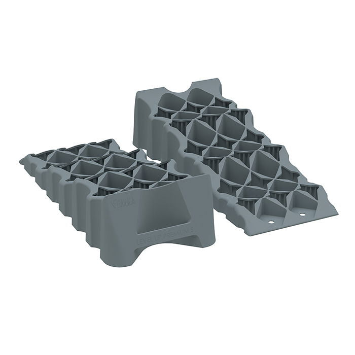 Fiamma Level Up Premium S niveaukiler egnet til /n især campere og varevogne. Den rillede overflade /n gør, at kilerne griber godt fat i køretøjets dæk. /n Kilerne revner og knækker ikke som træ - de er /n utrolig holdbare. Sæt á 2 stk. leveret i taske. /n Mål: B28 x L68 x H16 cm. Niveauer: 3. Max /n belastning: 5 ton.