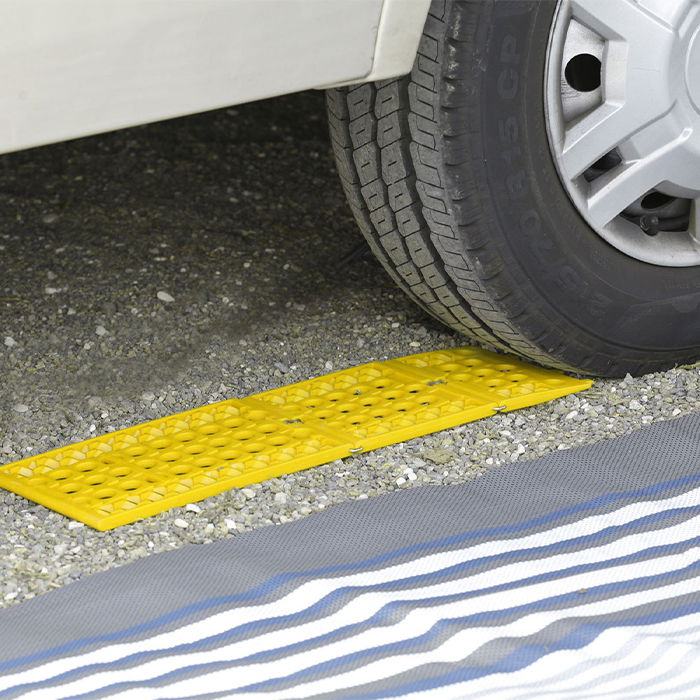 Foldbar stopklods, Tractor. 2 stk. foldbare /n stopklodser. Kan også benyttes som køreplade ved /n sandet eller iset underlag. Mål: 60 x 18 cm Max. /n belastning 960 kg pr. plade.