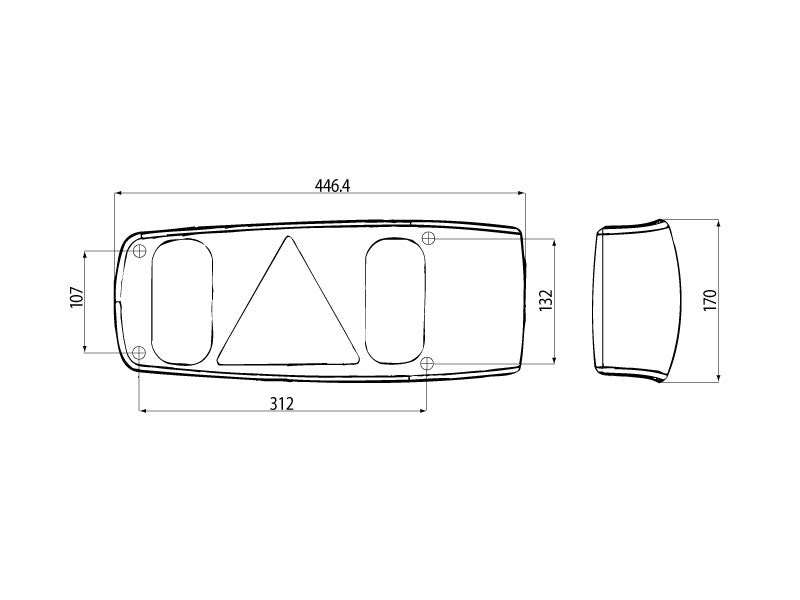 Baglygte Hella Caraluna til caravans, venstre med tågelygte, 446 x 170 mm