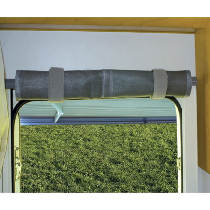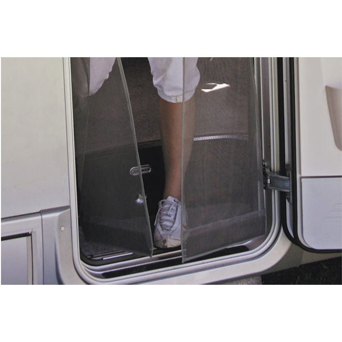 Fiamma insektnet til indgangsdøren. Delt i to /n baner, der overlapper hinanden. Farve: Grå. Hvert /n panel måler B 35 x H 230 cm - højden kan /n tilpasses.