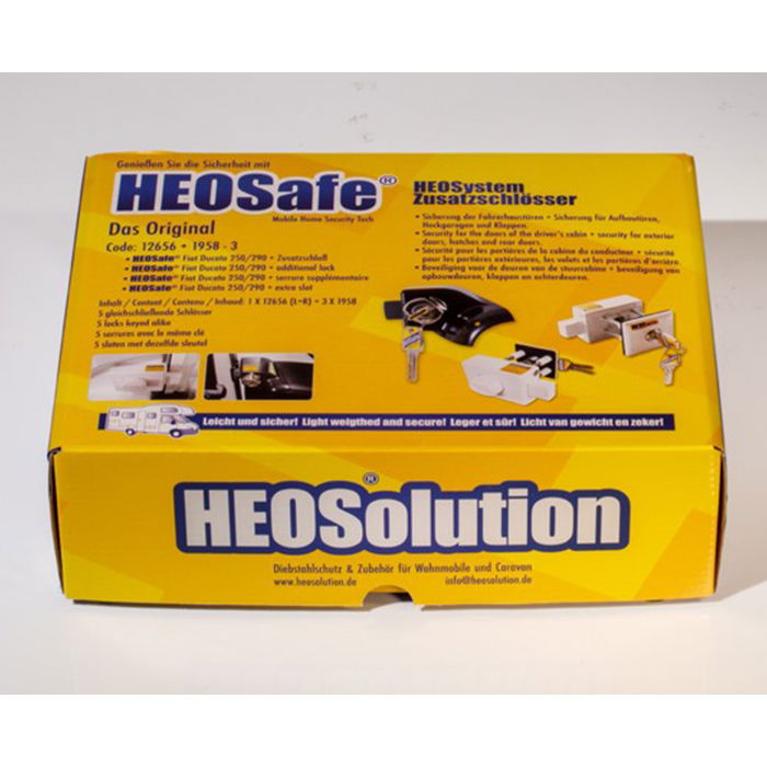 Heosafe låsesæt med 2 + 3 låse og 1 nøgle. Til Fiat Ducato serie 8, 2021 og frem.