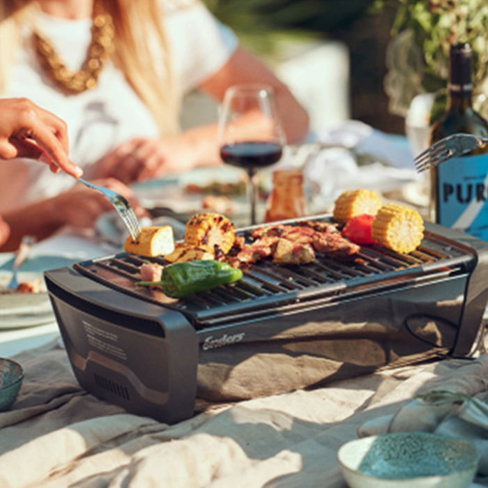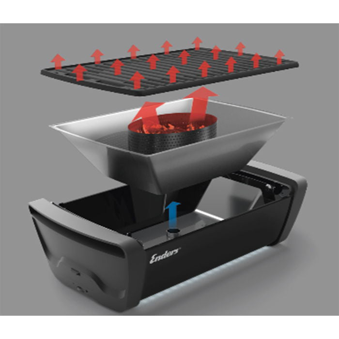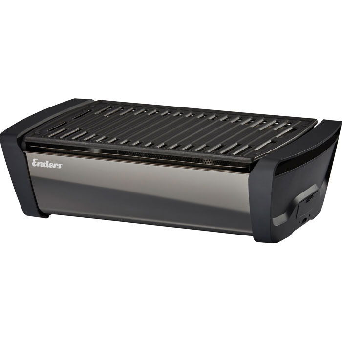 Enders kulgrill, Aurora, sort. Smart og /n prisvindende bordgrill, som ved hjælp af den nye /n og innovative E-Fan BBQ teknologi, som styres via /n USB eller batteri, gør grillen klar til brug på /n meget kort tid. Grillpladen er fremstillet i /n massiv, emaljeret støbejern. Farve: glansfuld /n sort Mål: B47 x D26 x H13,5 cm. Vægt: 3,7 kg.