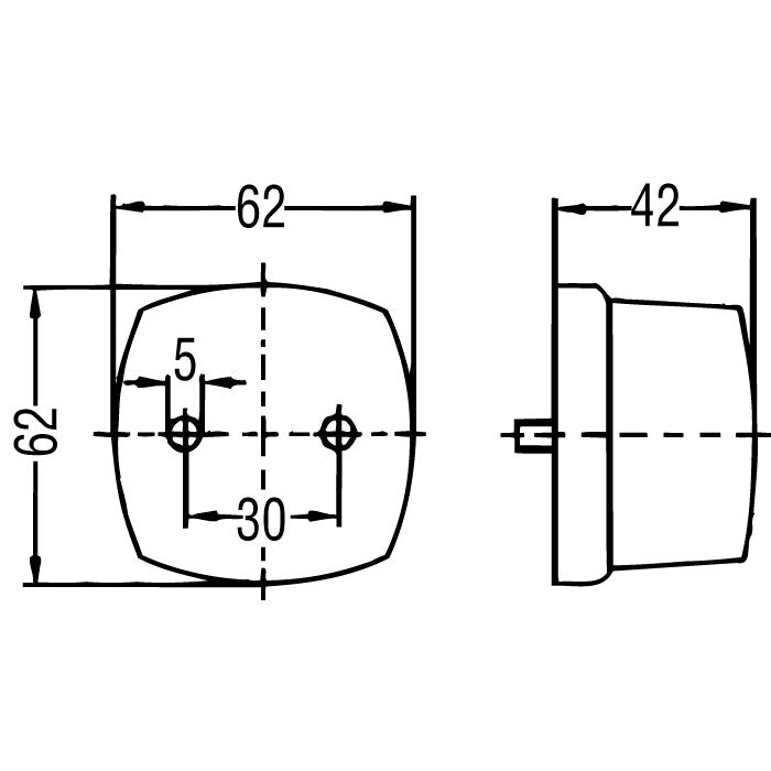 Frontlygte 12V LED Hella, hvid. 100 x 44 mm.