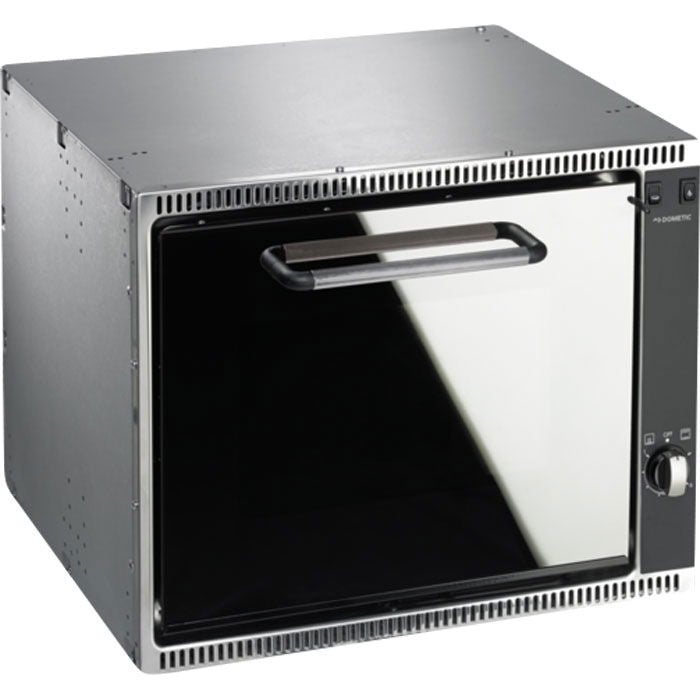 Dometic indbygningsovn med grill, 30 liter. /n Model: OG3000. Ovnen har drejetallerken, der kan /n kobles til for ensartet opvarmning af maden, mens /n den grilles. Bageplade og rist medfølger. Med /n låge hængslet i bund. Effekt ovn/grill: 1,2/1,6 /n kW. Gasforbrug ovn/grill: 87/116 g/h. /n Indbygningsmål: B 500 x H 410 x D 460 mm. Mål: B /n 530 x H 430 x D 415 mm. Vægt: 19,5 kg.