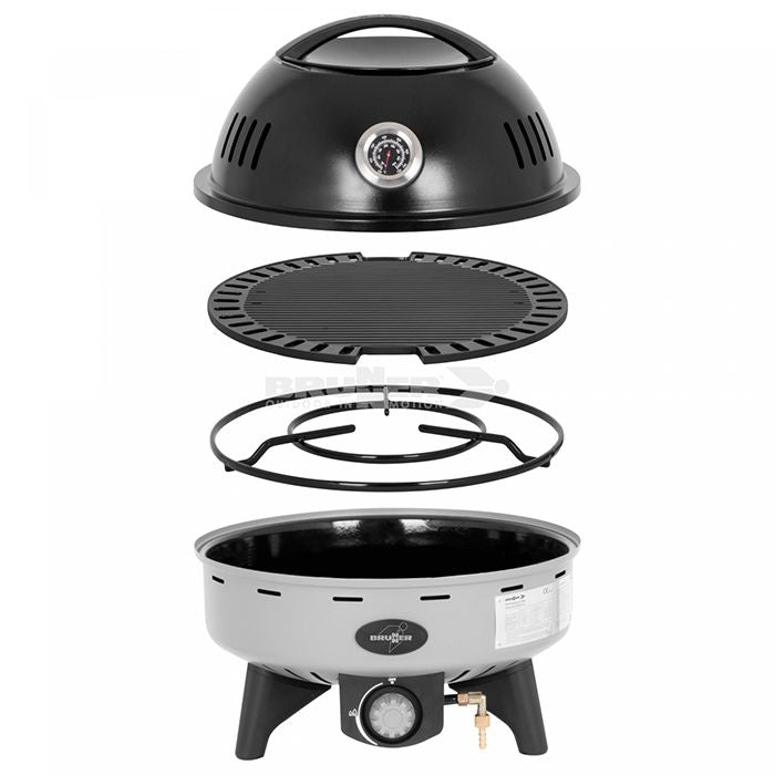 Gasbordgrill Serie: Devil BBQRUISER. Model: Devil /n BBQRUISER LT 30. Den ultimative bærbare udendørs /n gasgrill til campister på farten! Lavet i /n materialer af høj kvalitet og i et innovativt /n design. Kompakt og let, nem at pakke og bære, og /n dens kraftige brændere sikrer lækkert tilberedt /n mad hver gang. Mål: Ø47 x 43 cm. Vægt: 7 kg.