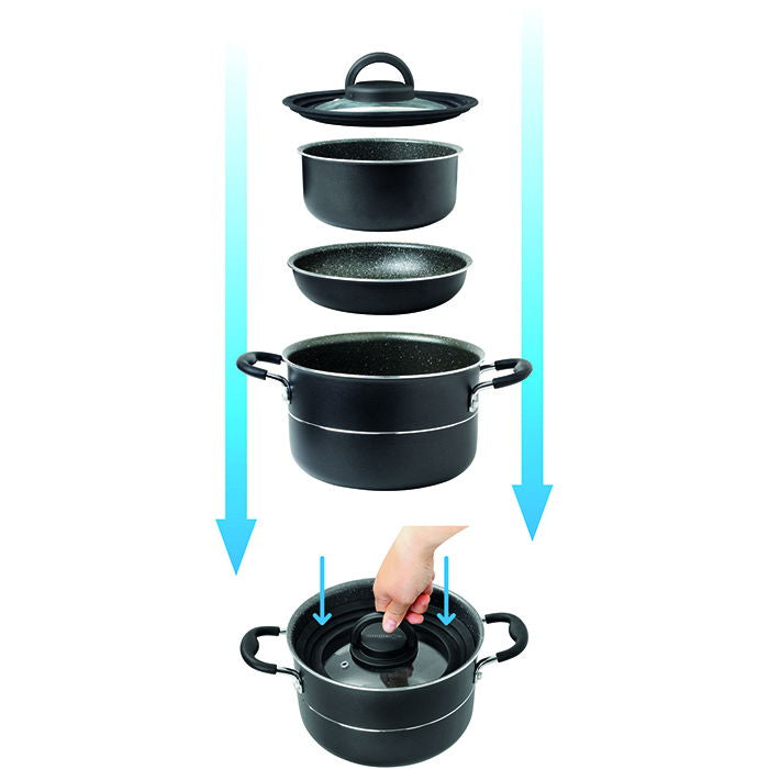 Universal grydelåg, Ø24/22/20 cm. Model: Corona /n trio Grydelåg fremstillet i silicone og glas. /n Siilicone-kanten gør, at låget kan anvendes til /n gryder og pander i flere forskellige størrelser. /n Kan maskinopvaskes og foldes.