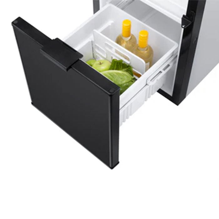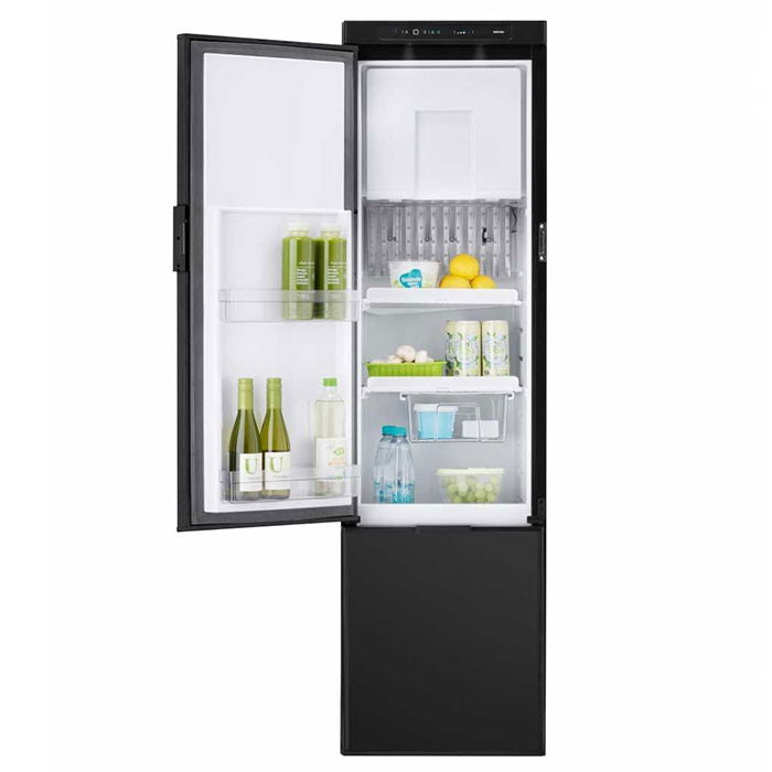 Thetford absorptionskøle og fryseskab. Med /n ekstern grøntsags- og flaskeskuffe. Model: N4141A /n Aut. Til 12V/230V/gas. Liter: 126 liter (heraf 15 /n liter fryseboks). Venstrehængt dør. Kontrolpanel: /n LCD Mål: H150 x B41,8 x D56,1 cm. Vægt: 38 kg.