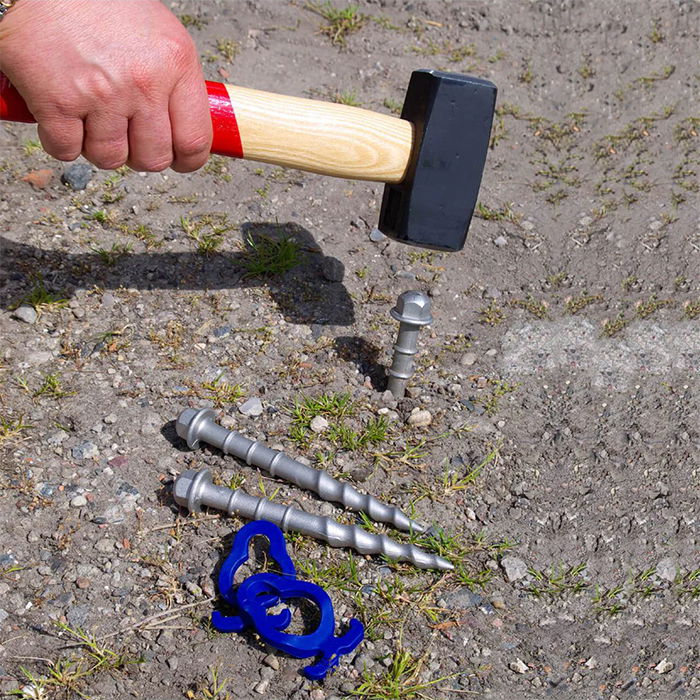 Skruepløk i aluminium, der er ideel til hårde /n underlag. Pløkken slås i jorden med en hammer og /n skrues nemt op igen med håndnøgle eller /n boremaskine. Længde: 15 cm. Sæt á 4 stk.