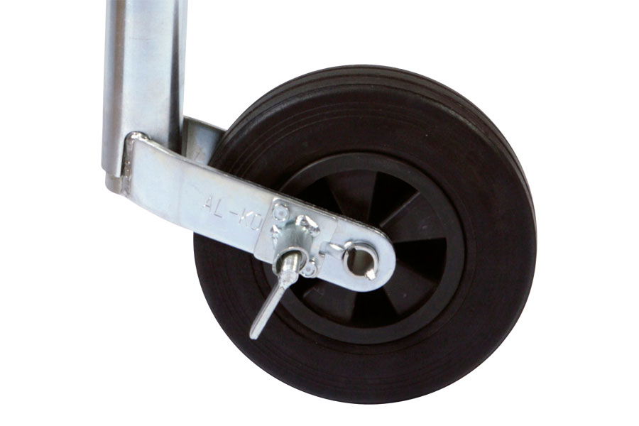 AL-KO næsehjul med 48 mm stamme, plastfælg og /n fast gummi. Med låsepal. Diameter: 200 x 50 mm. /n Belastning: 200 kg.