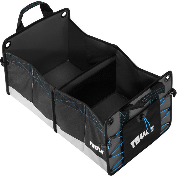 Medium En god hjælper på farten - nem at tage med /n fra sted til sted. Materialet er vandtæt, så du /n kan trygt placere kassen på fugtigt underlag, /n uden at vandet trænger igennem. Kan foldes, så /n den fylder minimalt. Leveres med overtræk. Farve: /n Sort/grå med blå detaljer. Mål: 61 x 36 x 30 cm.