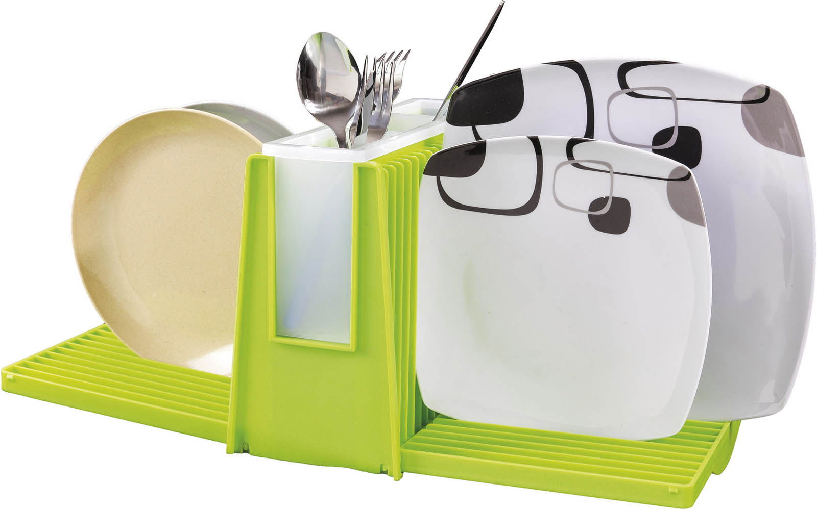 Foldbart opvaskestativ. Med plads til op til 36 /n tallerkner og bestik. Holderen til bestik, kan /n tages op, så den kan vaskes af. Meget kompakt og /n nemt at opbevare, når det er foldet. Materiale: /n Plast. Mål: 27 x 21,5 x 12 cm. Vægt: 1,3 kg.