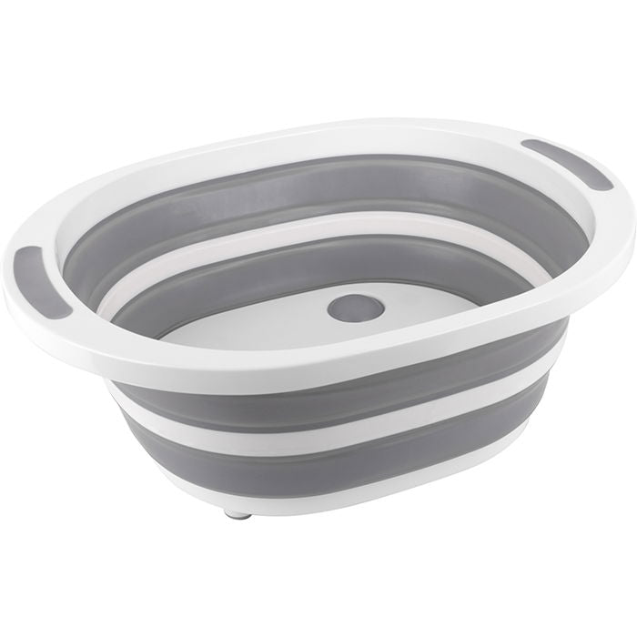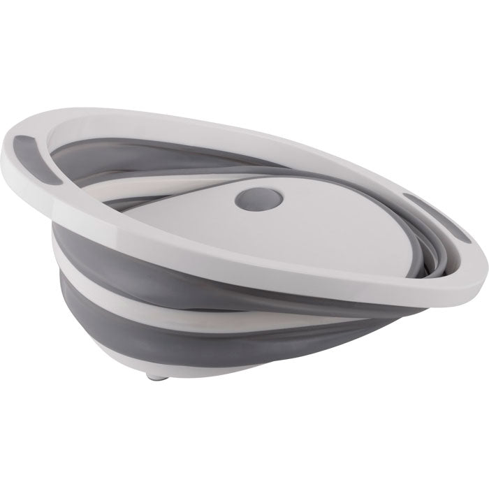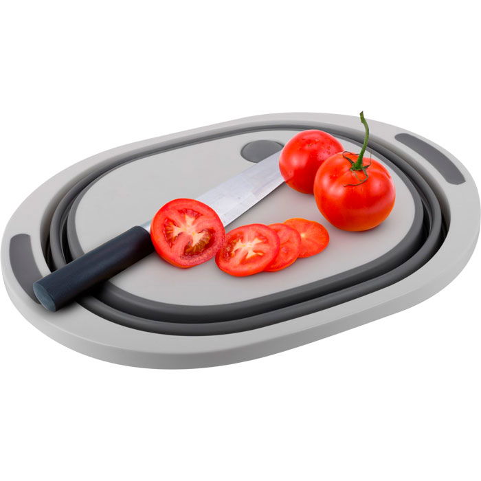 Opvaskebalje med skærebræt. Den foldbare /n vaskebalje er lavet af PP-plast og /n fødevaregodkendt TPR-silikone, der er lugtfri og /n har lang holdbarhed. Med sin 3-i-1 funktion /n fungerer den som skærebræt til grøntsager, frugt /n og kød, en foldbar opvaskebalje, til rengøring /n eller som drypbakke til service og mad. Mål: 40 x /n 31,8 x H13,5 cm. Mål, foldet: 40 x 31,8 x H3 cm.