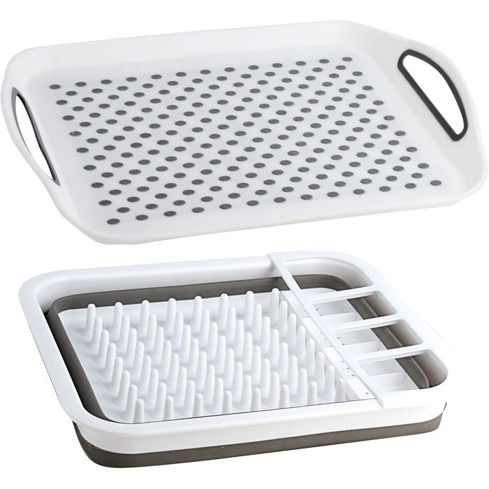 Opvaskestativ, foldbart. Praktisk opvaskestativ /n med dryp/serveringsbakke og bestikholder Farve: /n Hvid/grå. Mål: 36,5 x 31 x 12 cm. Mål, foldet: /n 36,5 x 31 x H6 cm. Materiale: Kunststof.