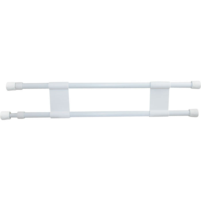 Holder/sikring til skabe. Består af to stænger. /n Længden kan justeres, så den passer til skabets /n bredde. Materiale: metal og plastik. Mål: L 42-70 /n cm, H13,3 mm.