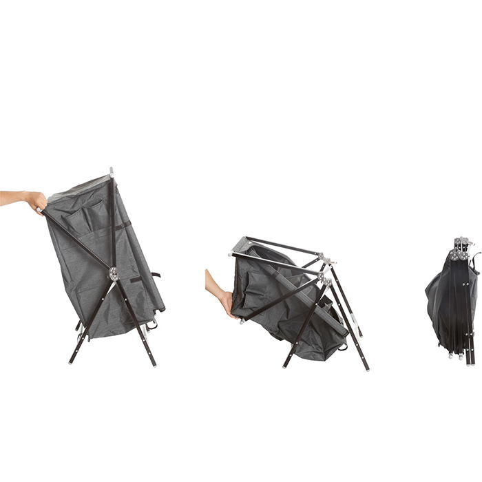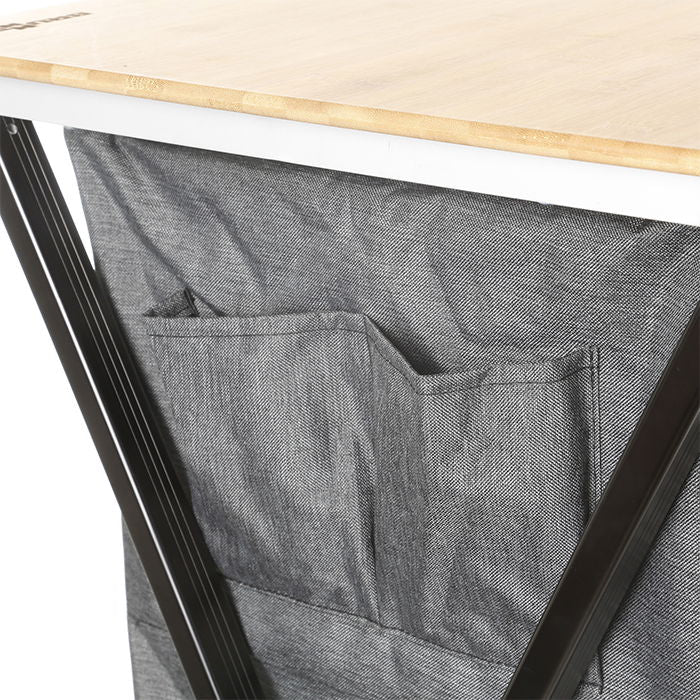 Campingskab, enkelt. Model: Cross LS SQ. /n Campingskab med arbejdsbord i bambus. Skabet er i /n én sektion med tre hylder. Slidstærkt stel i /n aluminium. Kan foldes sammen. Opbevaringstaske /n medfølger. Med justerbare fødder. Mål: L60 x B49 /n x H100 cm. Mål, foldet: L62 x B11 x H61 cm. Vægt: /n 8,4 kg.