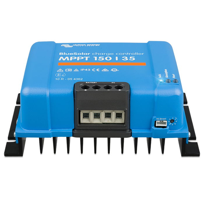 Victron solcellsregulator MPPT 150/35 laderegula- /n tor der maksimerer energiudbyttet, især ved /n skiftende lysforhold. Innovativ algoritme sikrer /n optimal ydelse ved delvis skygge. /n Effektivitet >98?%, fuld strøm op til 40?°C. /n Programmerbar ladealgoritme, avanceret /n beskyttelse og temperatursensor. Bluetooth /n og GX-enheder giver live-data. /n Vægt: 1,25 kg.