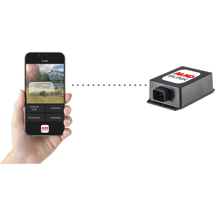 AL-KO 2LINK-boks med Bluetooth teknologi. /n Monteres ved campingvognens trækstang. Kan /n monteres på alle campingvogne. 12V.