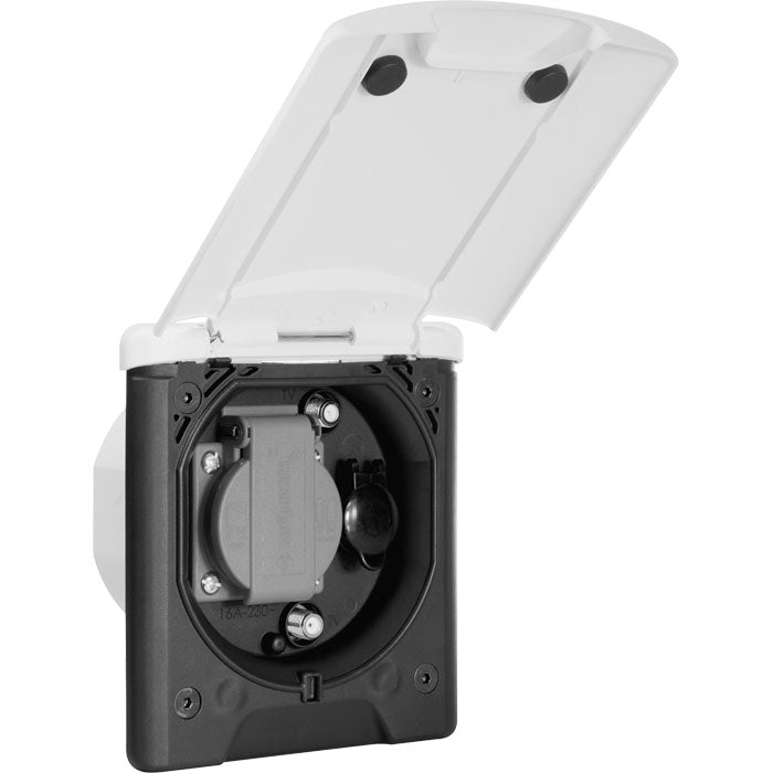 El-stikdåse udtag 12 V / 230 V / antenne / satellit med klapdæksel, hvid