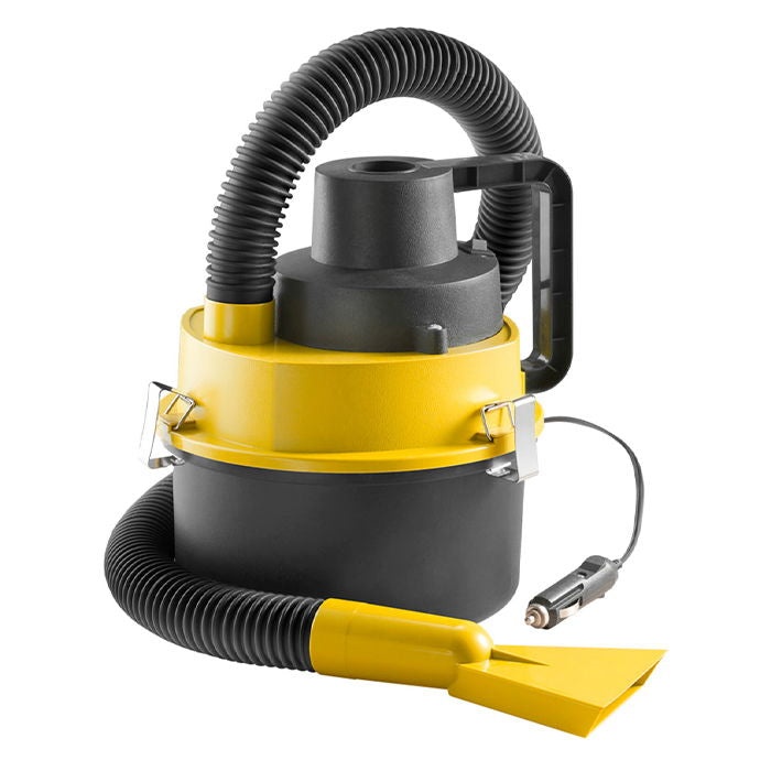 Våd-tør støvsuger, 12 V. Moderne og funktionelt /n design. Leveres med 3 mundstykker, bærestrop og /n opbevaringspose. 12V / 100W / 10A til alle /n køretøjer. Kabellængde: 3,6 m. Volumen: 500 ml. /n Sugeevne: 900l/min. Mål: 22,5 x 17 x 27 cm.