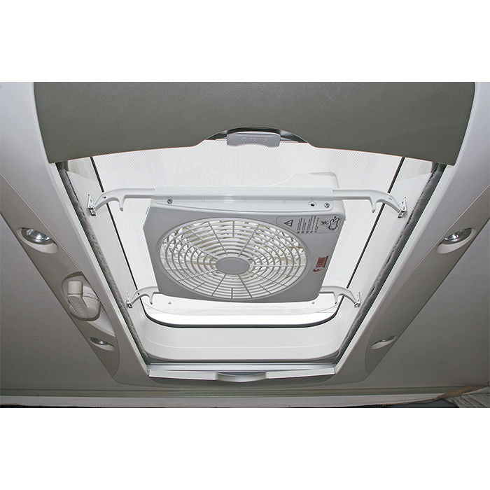 Fiamma Turbo-Kit 12 V. Ventilationssæt, der kan /n monteres i en tagluge eller anvendes som /n bordventilation. Sættet består af en ventilator /n (Ø 24 cm), 2 teleskopbare monteringsvinkler, der /n kan reguleres fra 36 til 48 cm samt 12 V /n strømkabel til cigartænderen. Turbo-Kit har et /n teleskopbart klemmesystem, hvilket gør det muligt /n at montere ventilatoren i alle tagluger med mål /n fra 40 x 40 cm til 50 x 70 cm. Vægt: 1,3 kg.