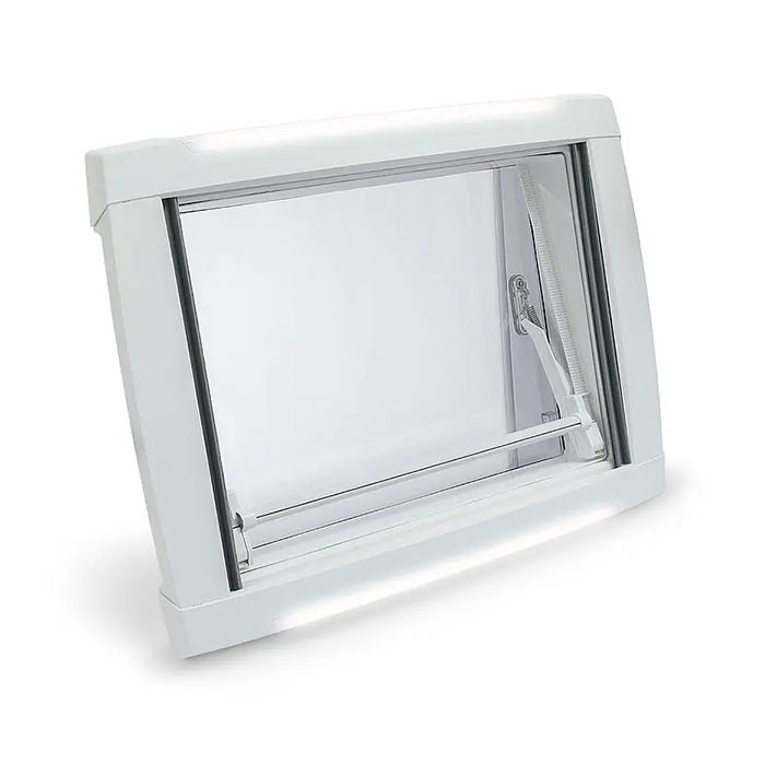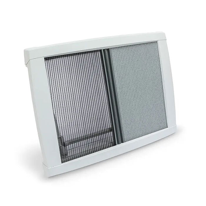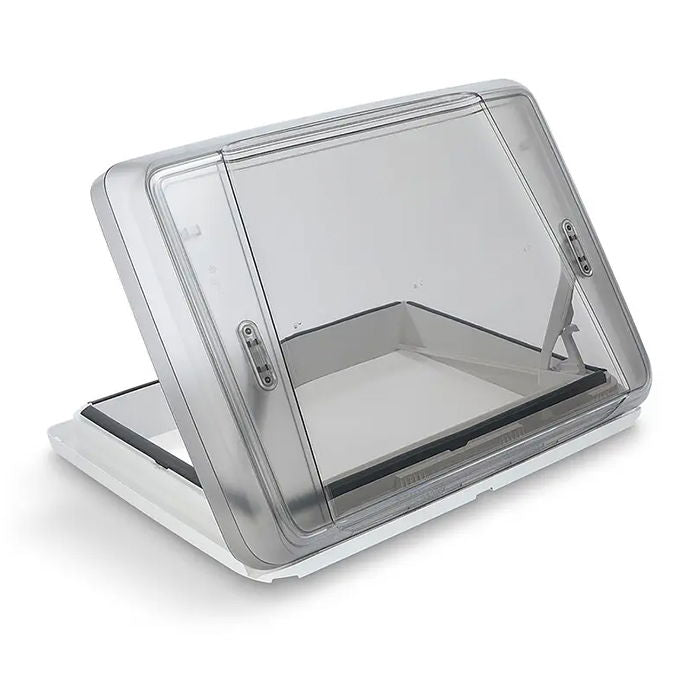 VisionStar tagluge, med røgfarvet glas og hvid /n ramme. Desuden dobbelt plisségardin. Taglugen har /n trinløst trækgreb, og kan åbnes op til 55 grader /n - kan betjenes med en hånd. Med tvangsudluftning. /n Indbygningsmål: 700 x 500 mm Indvendige mål: 872 /n x 610 x 37 mm Højde over tag: 105 mm Vægt: 7,9 kg. /n