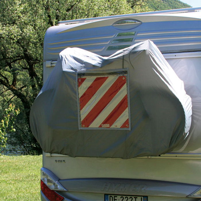 Fiamma cykelovertrækspose til 4 cykler, ekstra /n stærk. Montering bag på caravan / motorcaravan. /n Farve: Lysegrå. Mål: H 110 x B 185 x D 75 cm.
