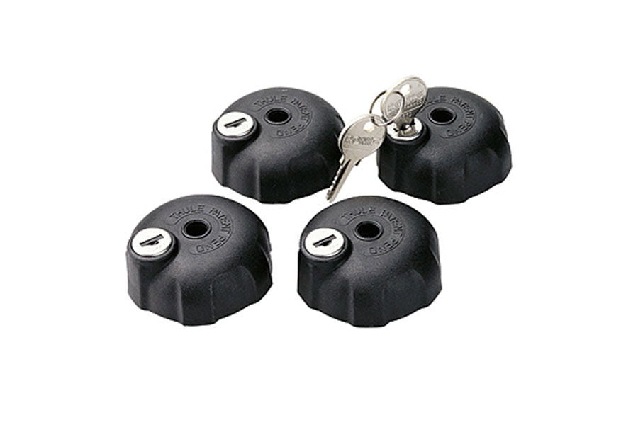 Sæt á 4 stk. Låsen monteres på Thule Bike holder. /n På den måde kan cyklen låses fast til /n cykelholderen. Kan anvendes til både Excellent, /n Elite G2 og Sport G2.