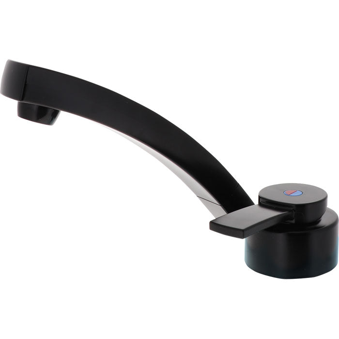 Comet mixvandhane til varmt og koldt vand, /n kompakt. Med kontakt. Ideel til vaske med glaslåg /n (total højde 40 mm). Monteret med blød slange. /n Model: Florenz. Farve: Satin, sort. Tryk: 3 bar. /n Dimensioner: H140 (hane foldet ind) x B85 mm, Ø33 /n mm. Gevindlængde: 40 mm.
