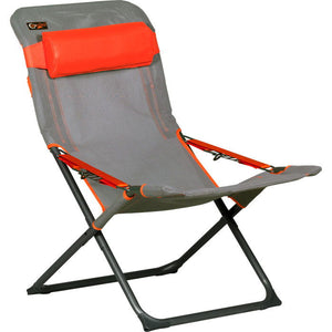 Portal hvilestol. Model: Eddy. Farve: Grå/orange. /n Betræk: UV beskyttet PVC coated polyester. Mål /n (foldet): D63 x B10 x H103 cm. Max. belastning: /n 100 kg. Vægt: 5,7 kg. Komfortabel og foldbar /n hvilestol. Ryggens position justeres via de /n justerbare stropper, der også udgør stolens /n armlæn. Designet er friskt i grå med orange /n kantbånd.